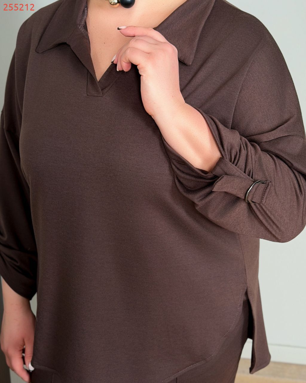 Штани на резинці, з високою посадкою. Універсальний дизайн – під кросівки, лофери чи підбори. Рукава в сорочці регулюються патами, що дає можливість легко перетворити рукав повної довжини на рукав 3/4. Приємна до тіла тканина, має розтяжність.