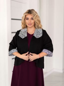 Піджак прикрашений з гарним принтованим коміром та манжетом. по рукаві . В ньому можно піти на вечірку,