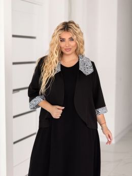 Піджак прикрашений з гарним принтованим коміром та манжетом. по рукаві . В ньому можно піти на вечірку,