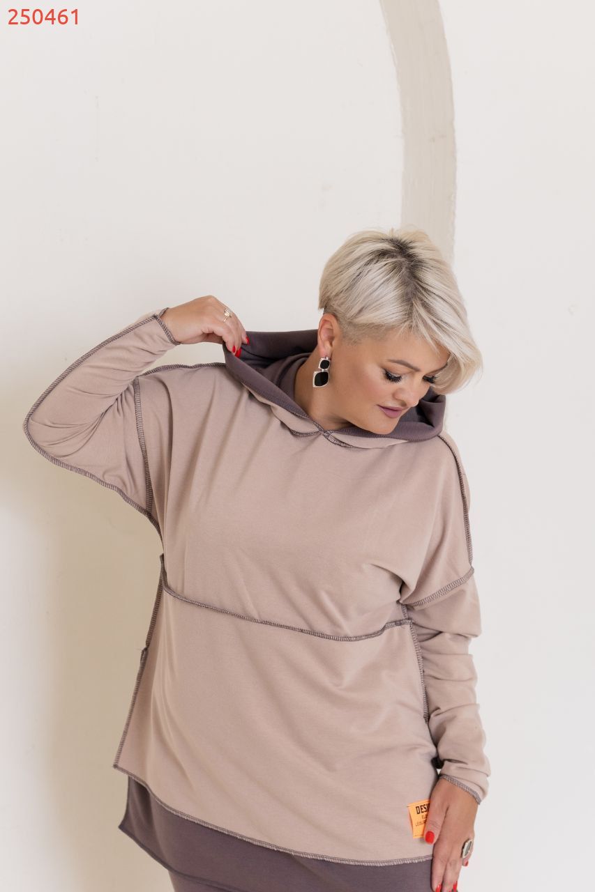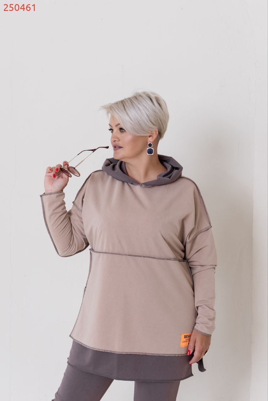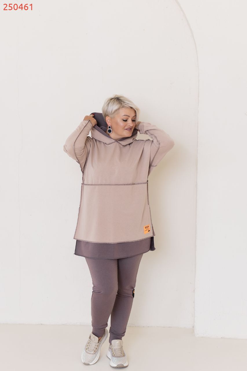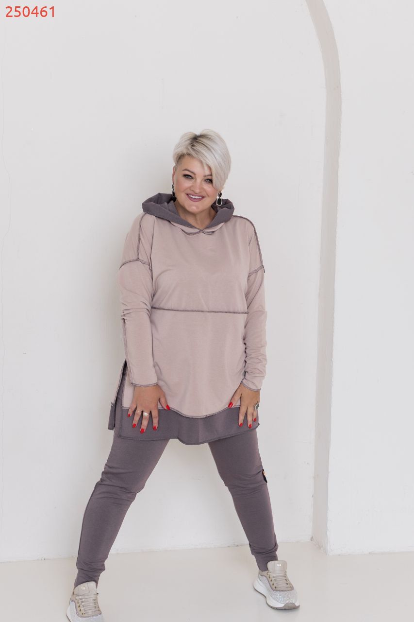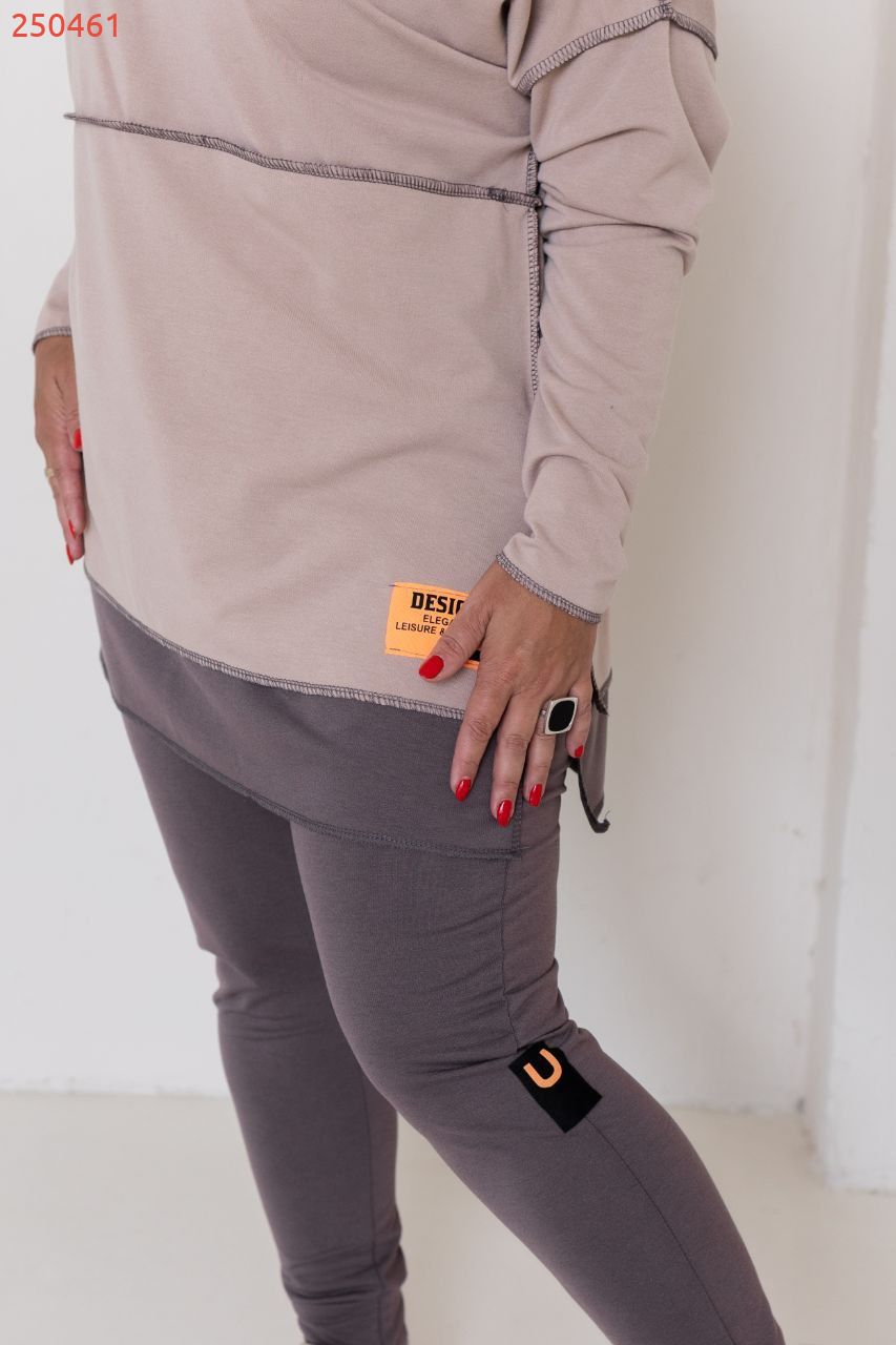 Стильний костюм виготовлений з якісної двунитки, цікавий крій. Туніка вільного крою, штани 7/8 на манжеті, висока посадка, кругова резинка.