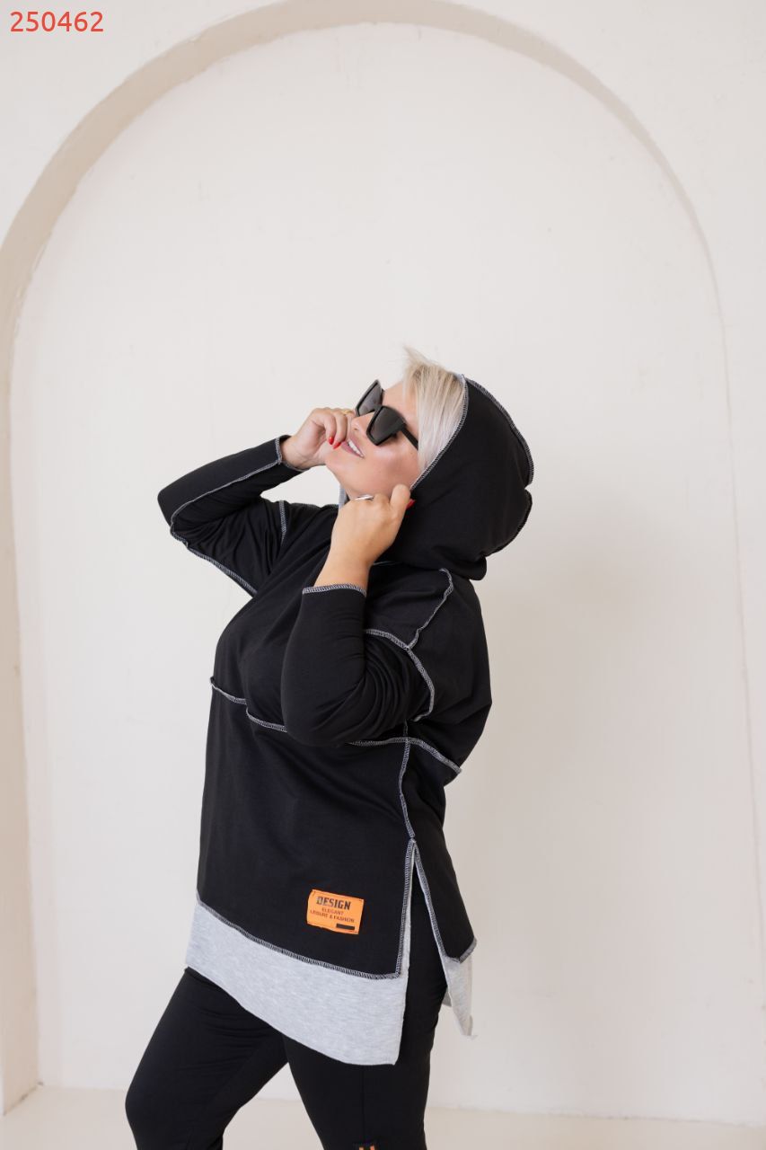 Стильний костюм виготовлений з якісної двунитки, цікавий крій. Туніка вільного крою, штани 7/8 на манжеті, висока посадка, кругова резинка.