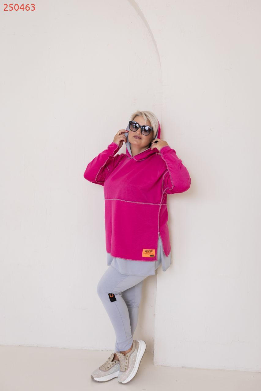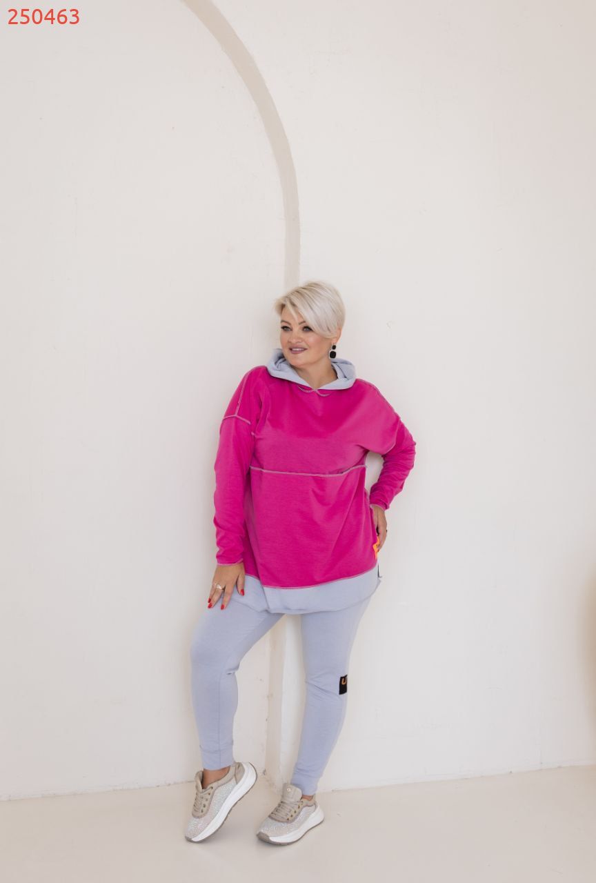 Стильний костюм виготовлений з якісної двунитки, цікавий крій. Туніка вільного крою, штани 7/8 на манжеті, висока посадка, кругова резинка.