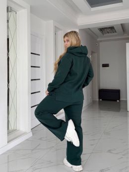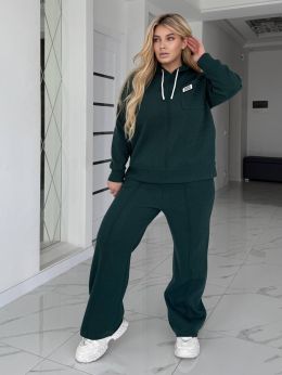 Стильний жіночий костюм у глибоких трендових відтінках– ідеальний вибір для тих, хто цінує комфорт і лаконічну елегантність. М’яка, приємна до тіла тканина забезпечує затишок у прохолодну погоду, а продуманий крій додає образу сучасності. Світлі шнурки на капюшоні створюють контрастний акцент, а акуратний логотип на грудях підкреслює брендований стиль. Широкі штани зі стрілками візуально подовжують ноги та забезпечують вільний рух.