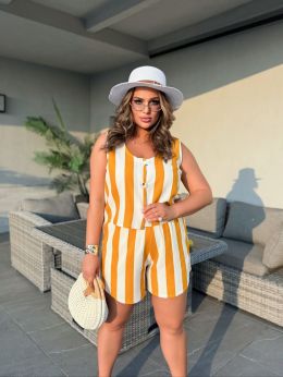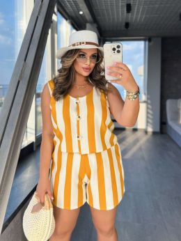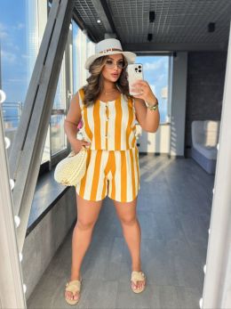 Кофта+ Шорти. Кофта вкорочена, без рукавів, попереду багатофункціональні гудзики. Шорти розширені з кишенями з боків. Тканина не тягнеться.