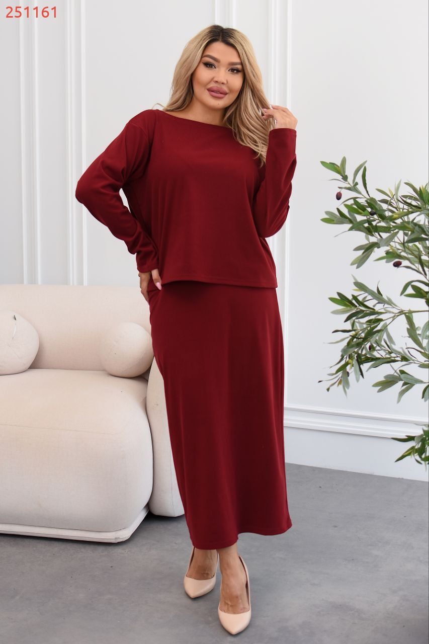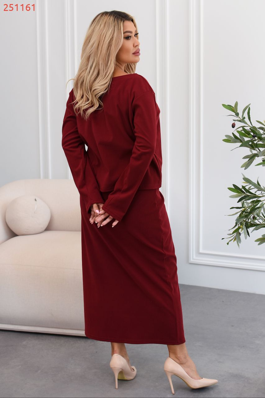 Теплий прогулянковий костюм. Кофта+Спідниця. Кофта, горловина човен, довгий рукав, Спідниця довга приталена, довжина максі.