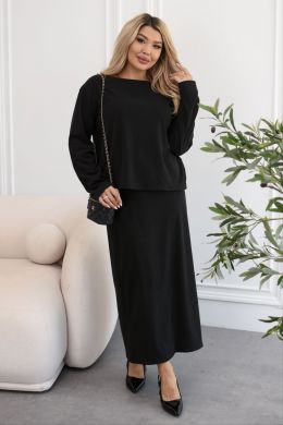 Теплий прогулянковий костюм. Кофта+Спідниця. Кофта, горловина човен, довгий рукав, Спідниця довга приталена, довжина максі.