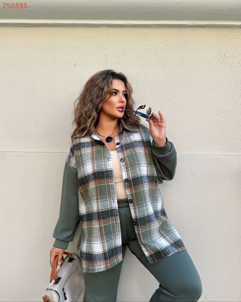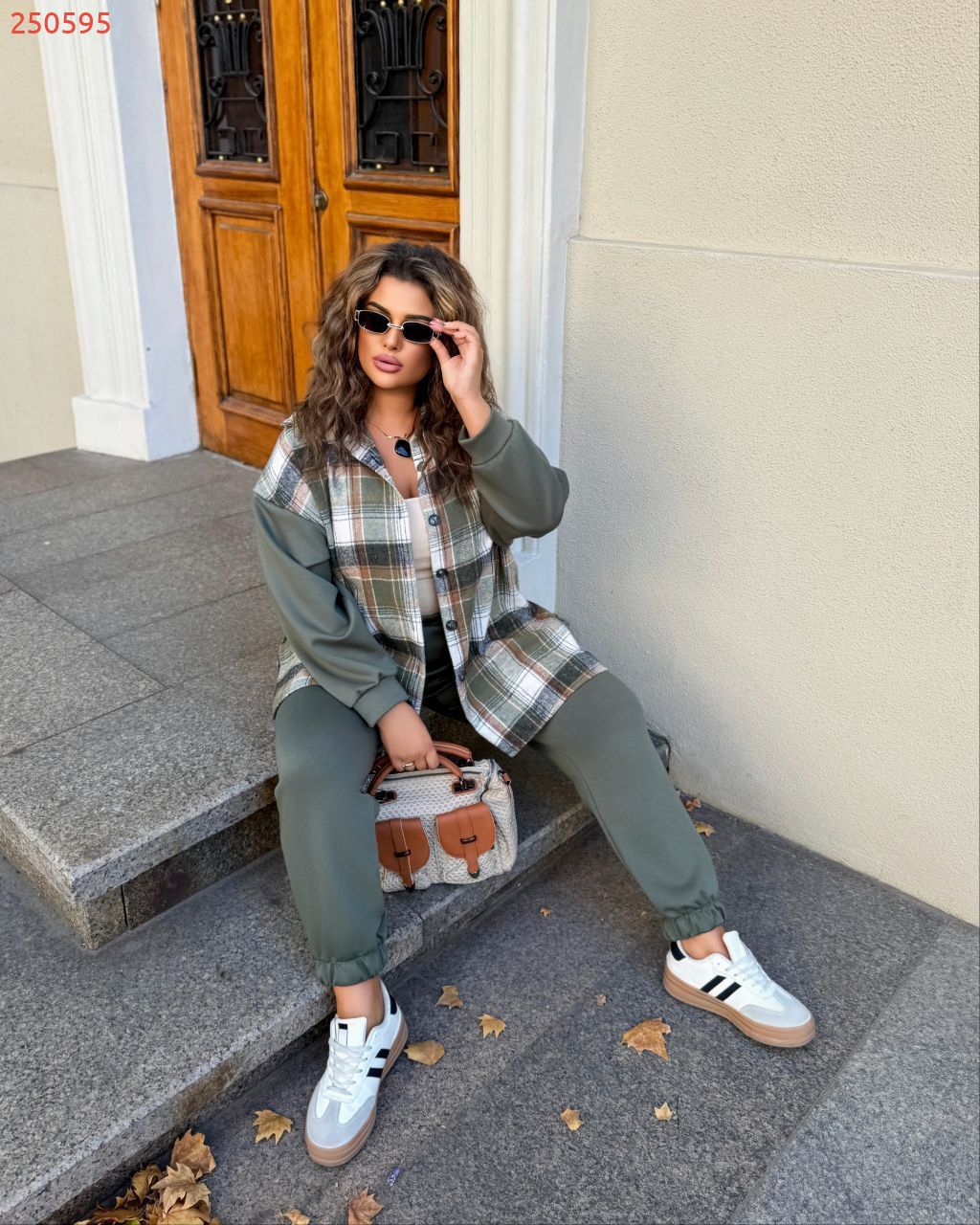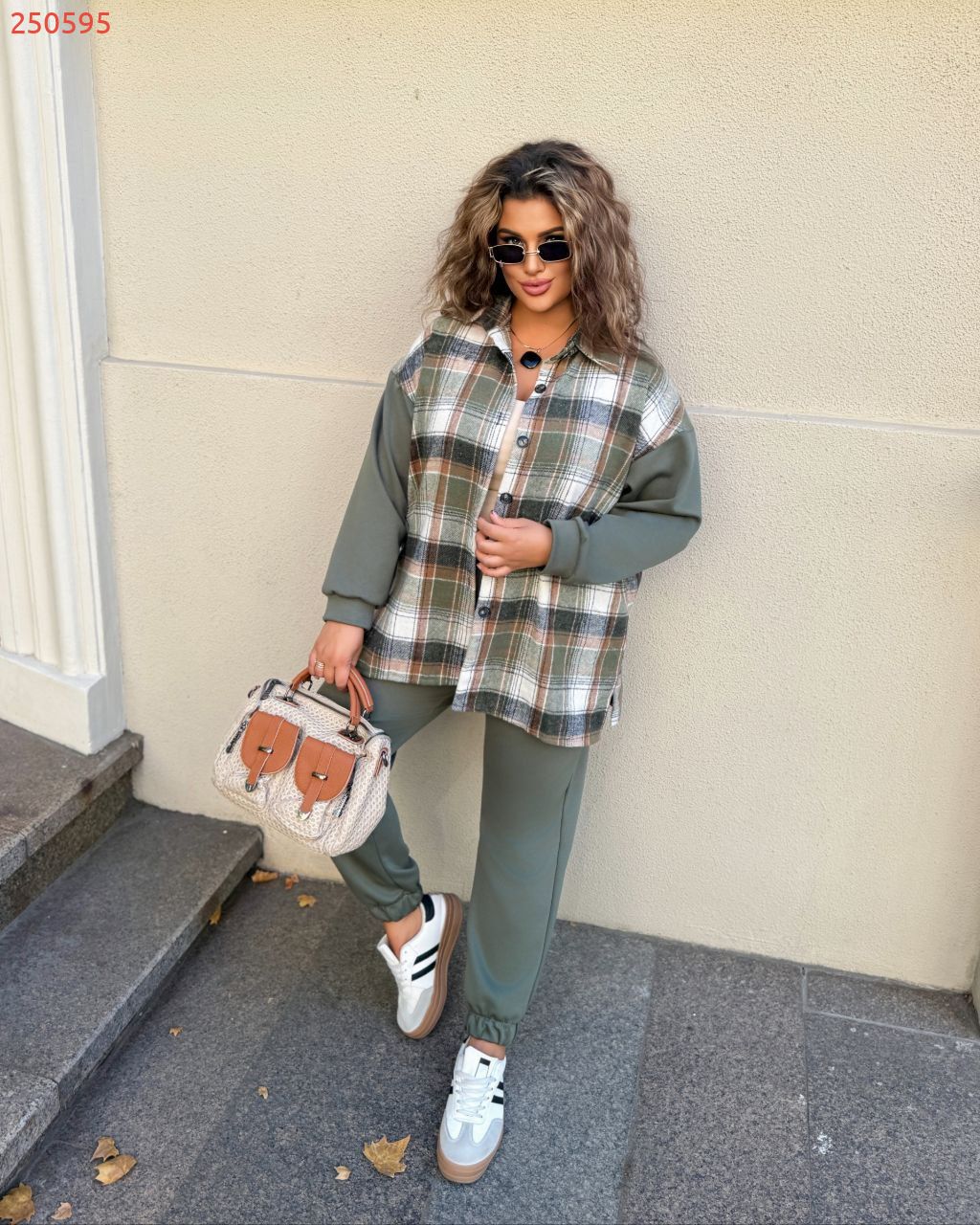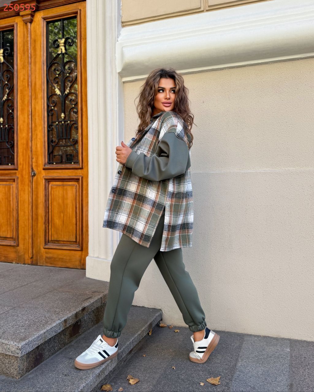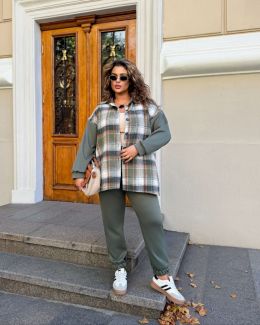 Теплий прогулянковий костюм у спортивному стилі. Сорочка+ Штани. Сорочка класична подовжена на ґудзиках попереду, розрізи з боків, на рукавах манжет. Штани, з кишенями, на поясі різанина, внизу манжета.