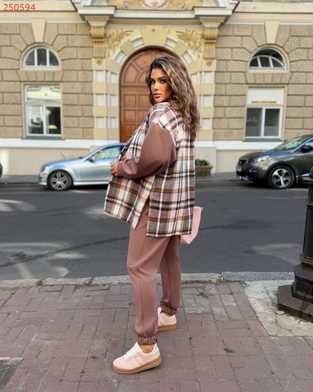 Теплий прогулянковий костюм у спортивному стилі. Сорочка+ Штани. Сорочка класична подовжена на ґудзиках попереду, розрізи з боків, на рукавах манжет. Штани, з кишенями, на поясі різанина, внизу манжета.
