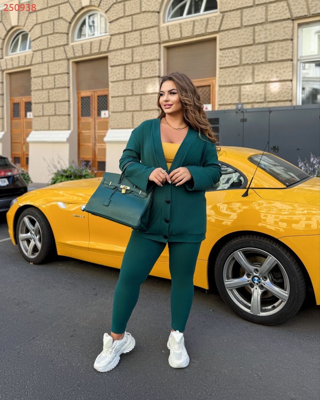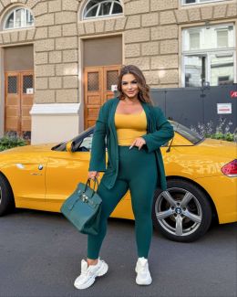 50-52 Об'єм грудей кофти - 114 см, Довжина кофти - 77 см, Довжина рукава кофти - 61 см, Об'єм талії -78 (розтягується до 90 см), Об'єм стегон - 88 см (розтягується 104 см), Довжина лосин - 93