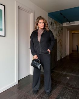 Осінньо-зимовий теплий прогулянковий костюм. Кофти з довгим рукавом, попереду змійка. Штани на гумці з кишенями, розширені донизу.