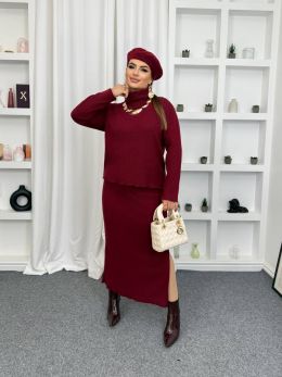54-56 Ог 118, довжина кофти 61, талія тягнеться до 120, бедра 118, довжина спідниці 91