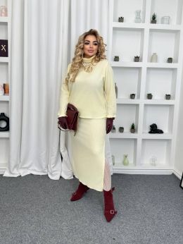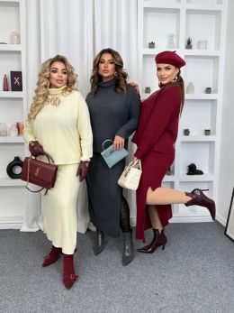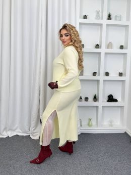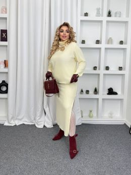 54-56 Ог 118, довжина кофти 61, талія тягнеться до 120, бедра 118, довжина спідниці 91