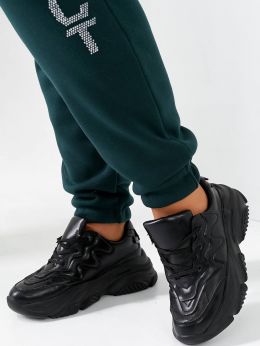 Штани з високою посадкою, пояс гумка 4 см, з боків кишені, декоровані камінням