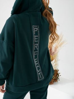 Кофта на змійці, декорована камінням, зручний глибокий капюшон, якісна фурнітура.