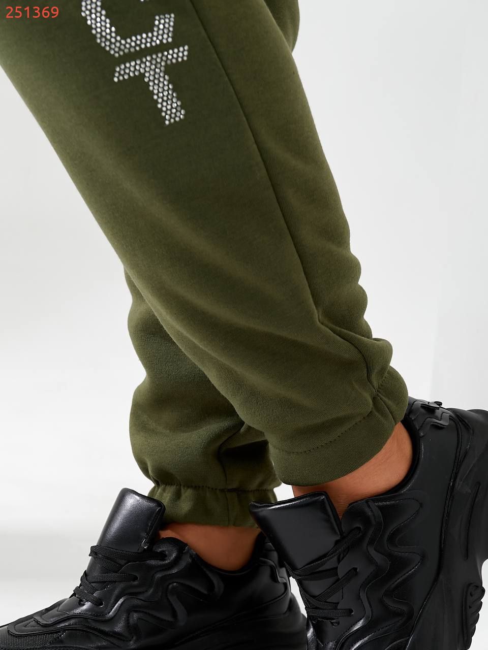 Штани з високою посадкою, пояс гумка 4 см, з боків кишені, декоровані камінням
