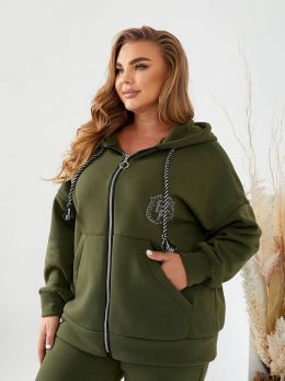 Кофта на змійці, декорована камінням, зручний глибокий капюшон, якісна фурнітура.