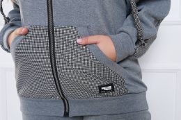 Кофта подовжена з кишенями «кенгуру» з тканини з дизайном, лінія плеча з опущеною проймою, рукави декоровані вставками з тканини з дизайном