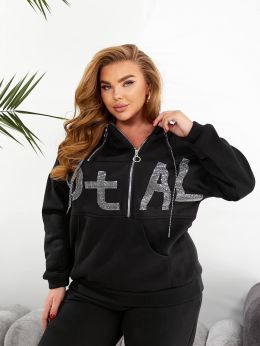 Кофта вільного крою, зручний глибокий капюшон, декорована камінням.