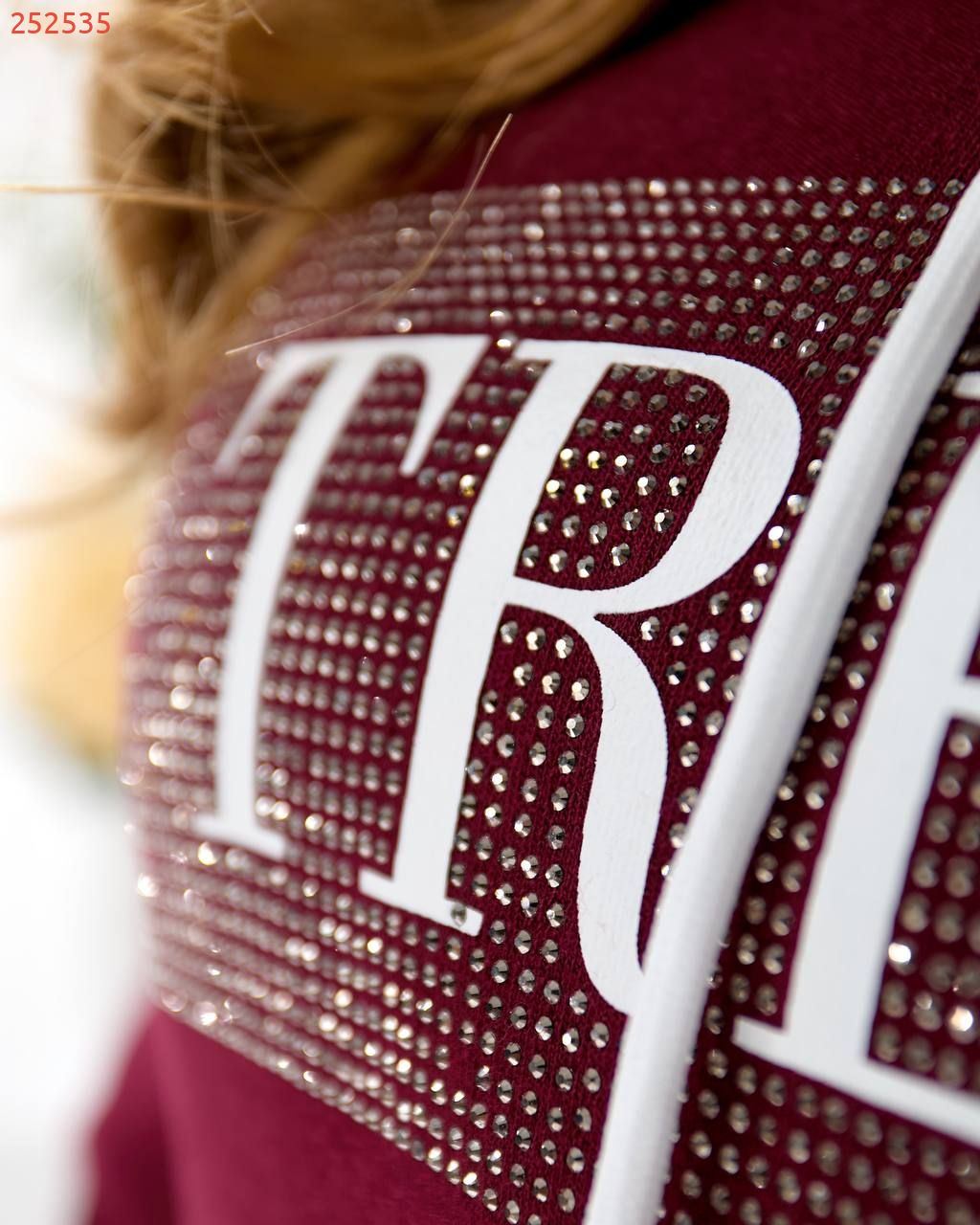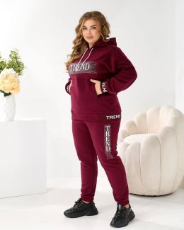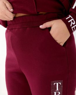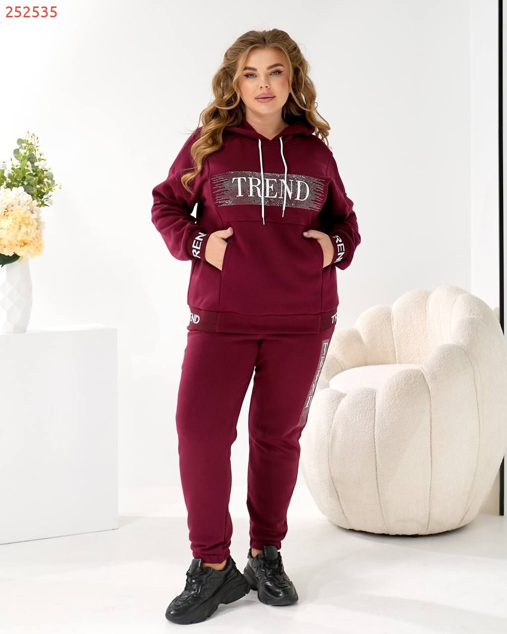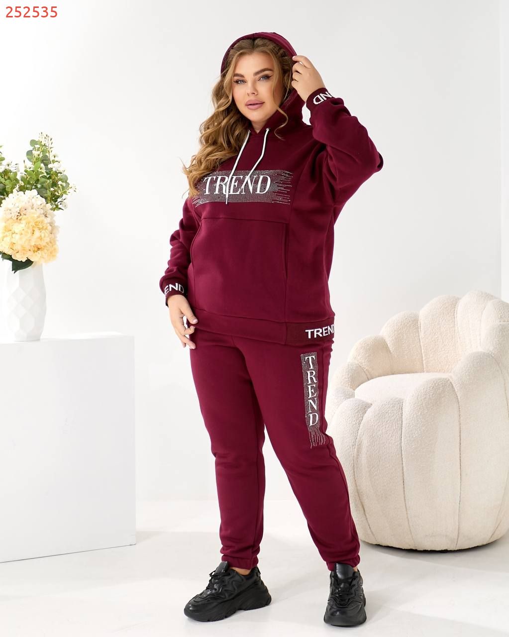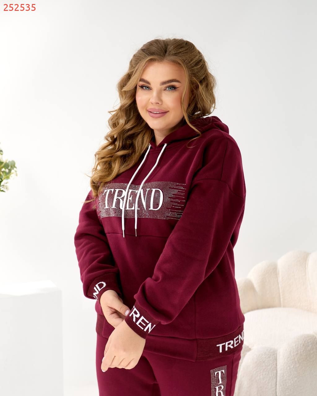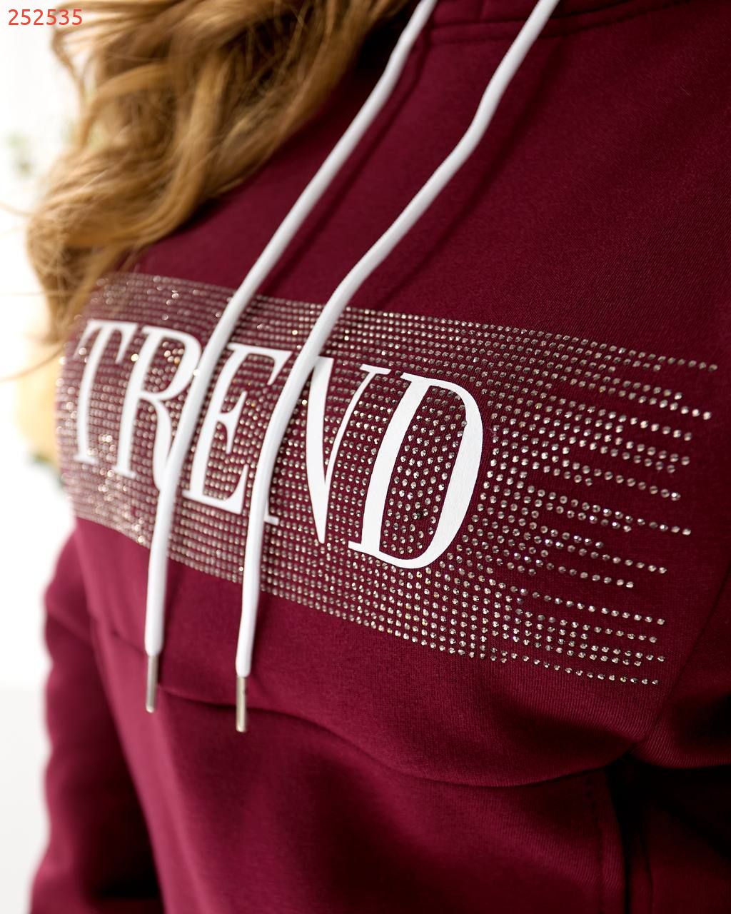 Будь завжди в «Тренді». Худі Oversize з капюшоном та яскравим акцентом: принт TREND з мерехтливими стразами/блиском (видно на фото!) + Джогери з м'якої тринитки на флісі!