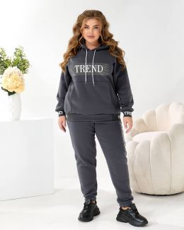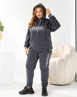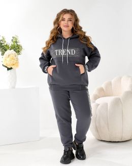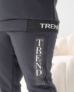 Будь завжди в «Тренді». Худі Oversize з капюшоном та яскравим акцентом: принт TREND з мерехтливими стразами/блиском (видно на фото!) + Джогери з м'якої тринитки на флісі!