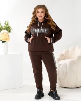 Будь завжди в «Тренді». Худі Oversize з капюшоном та яскравим акцентом: принт TREND з мерехтливими стразами/блиском (видно на фото!) + Джогери з м'якої тринитки на флісі!