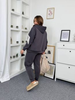 Низ - штани вільного крою з того ж матеріалу, на гумці, що забезпечує комфорт та зручну посадку. Костюм стильний та затишний – ідеально підходить для повсякденних прогулянок, відпочинку чи casual-образів.