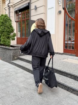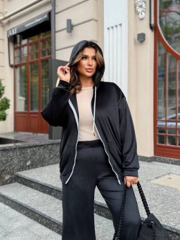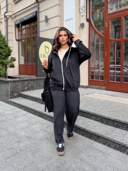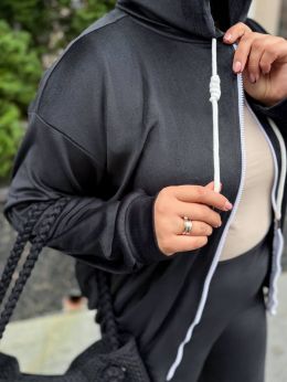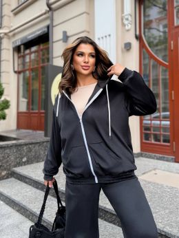Зручний та стильний спортивний костюм. Вільна кофта з капюшоном на блискавці, довгими рукавами та кишенею.