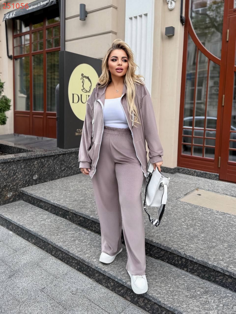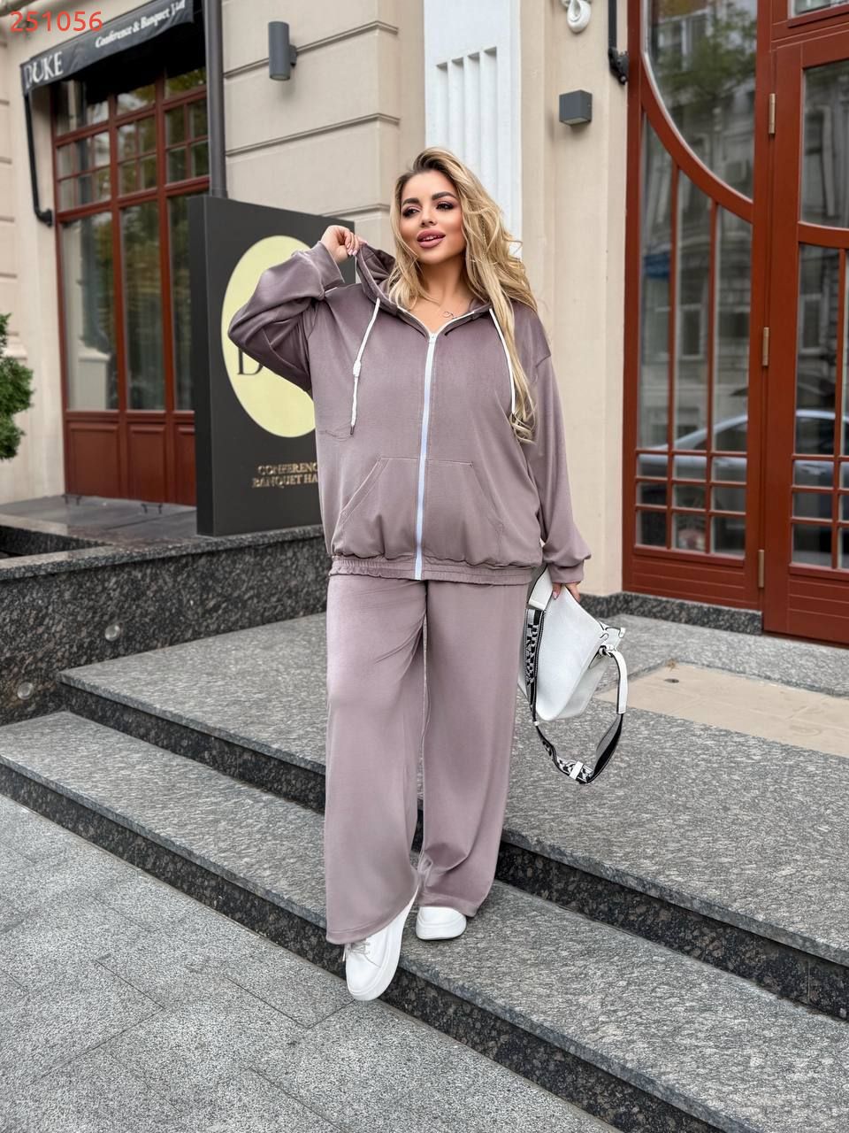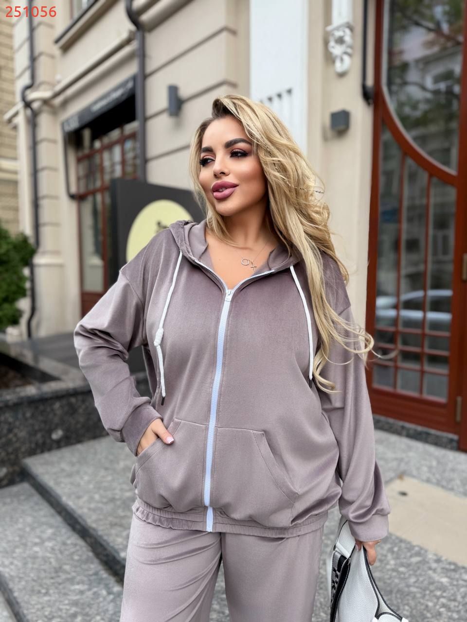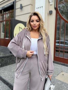 Зручний та стильний спортивний костюм. Вільна кофта з капюшоном на блискавці, довгими рукавами та кишенею.