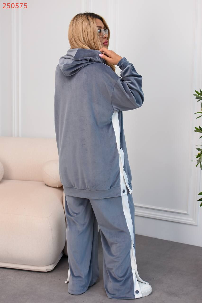 Це стильний жіночий спортивний костюм вільного крою з оксамитової тканини.