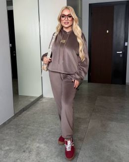 Стильний спорт костюм для прогулянок.Оверсайз.Худі регулюється затяжками по низу.Завдяки цьому ви зможете носити його як подовженним так піднятим .