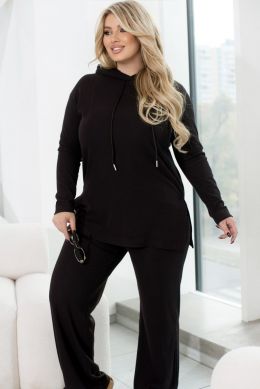 Легкий костюм-двійка, виконаний з м’якої та теплої тканини, відмінно поєднується з кросівками і великими джинсовими куртками. До його складу входить кофта крою oversize зі светром з довгими рукавами і капюшоном, а також актуальні штани-палаццо вільного крою з кишенями на резинці, вшитій по лінії талії.