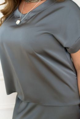 Неймовірний костюм з щільної атласної тканини з блузкою та спідницею підкорить найзавзятіших модниць. Завдяки легкій тканині Ви відчуєте особливий комфорт, а її текстура допоможе підкреслити вигини тіла.