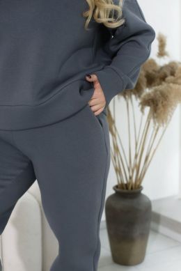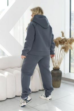 Теплий спортивний костюм із трьохнитки на флісі, який не кошлатиться, створений для максимального комфорту та затишку. Худі із капюшоном має дві кнопки на горловині, що надійно захищають від холоду та забезпечують додаткове тепло, прикриваючи шию. Довгі рукави з манжетами гарантують комфортну посадку та зберігають тепло. Штани з високою посадкою на гумці чудово підкреслюють талію, а манжети внизу забезпечують зручність та стиль. Модель також оснащена практичними боковими кишенями, які додають функціональності. Ідеальний варіант для прохолодної погоди та активного відпочинку.