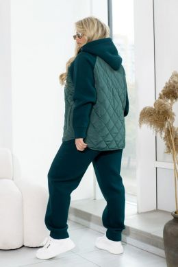 Спортивний костюм із кофтою на змійці, пошитий із поєднання тканин "стежка" та трьохнитки, створений для комфорту та стилю. Кофта оснащена капюшоном зі шнурком, що проходить через люверси, забезпечуючи захист і регулювання. Спереду розташовані врізні кишені для зручності. Рукава з трьохнитки з манжетами забезпечують комфортну посадку. Штани з високою посадкою на еластичній гумці з боковими кишенями і манжетами внизу додають функціональності та забезпечують тепло. Ідеальний вибір для активного відпочинку чи повсякденних занять.