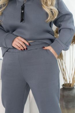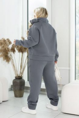 Спортивний костюм із трьохнитки на флісі забезпечує ідеальне поєднання тепла та комфорту в прохолодну погоду. Худі має зручну змійку і високу горловину, що ефективно захищає шию від холоду. Довгі рукави з манжетами забезпечують комфортну посадку та зберігають тепло. Штани з високою посадкою на еластичній гумці підкреслюють фігуру та забезпечують максимальну свободу рухів. Манжети внизу штанів додають стильного вигляду та додаткового тепла. Бокові кишені роблять костюм практичним і зручним для щоденного носіння або активного відпочинку.