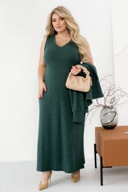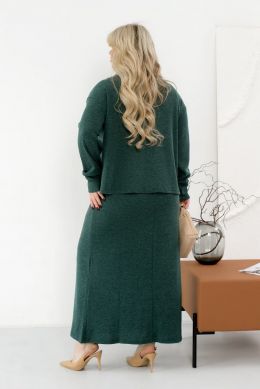 Стильний костюм, який складається з сукні та кофтинки, поєднує елегантність та комфорт в одному образі. Кофта з високою горловиною та довгими рукавами з манжетами виглядає дуже витончено, а занижена лінія плеча додає легкості та сучасного вигляду. Позаду кофтинка трохи довша, ніж спереду, що підкреслює її оригінальний стиль. Сукня максі-довжини, з прямим кроєм, створює елегантний силует, підкреслюючи витонченість фігури. Її V-подібний виріз горловини додає образу легкості та жіночності. Особливого шарму додає шов, що проходить по спинці, надаючи сукні вишуканого вигляду. Виготовлена з еластичної тканини, яка м’яко облягає тіло, сукня підлаштовується під ваші рухи, забезпечуючи максимальний комфорт і зручність. Ідеальний вибір для вечірки, урочистої події або важливого заходу, цей костюм гарантовано приверне увагу.