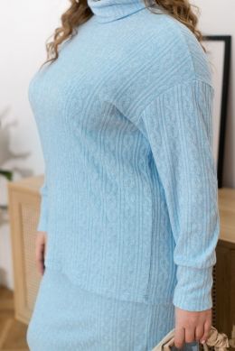 Цей вишуканий костюм виконаний із щільної, високоякісної в'язаної тканини, яка не кашлатиться і зберігає свій бездоганний вигляд навіть після тривалого носіння. Кофта з високою горловиною додає елегантності та затишку. Рукава з заниженою лінією плеча створюють стильний, вільний силует, а широкі манжети додають акуратності та сучасного вигляду.Спідниця прямого крою з резинкою в талії підкреслює фігуру, при цьому забезпечує максимальний комфорт. Шов, що проходить позаду, додає спідниці елегантності та підкреслює її витончену форму. Цей костюм – ідеальний вибір для тих, хто цінує стиль, комфорт та високу якість. Він стане чудовим доповненням до вашого гардеробу.