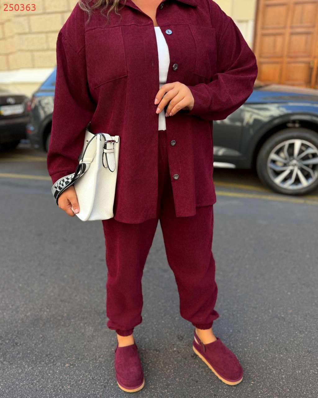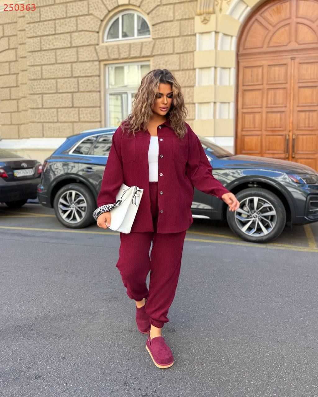 Костюм з м'якого мікровельвету великих розмірів – це ідеальне поєднання стилю та комфорту. Тканина з делікатною фактурою виглядає благородно і дорого, і при цьому залишається приємною до тіла і практичною в носінні. Мікровельвет м'яко тримає форму, не сковує рухів і дарує відчуття затишку протягом усього дня.