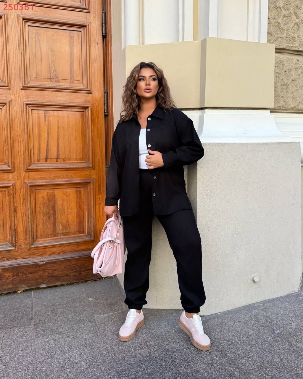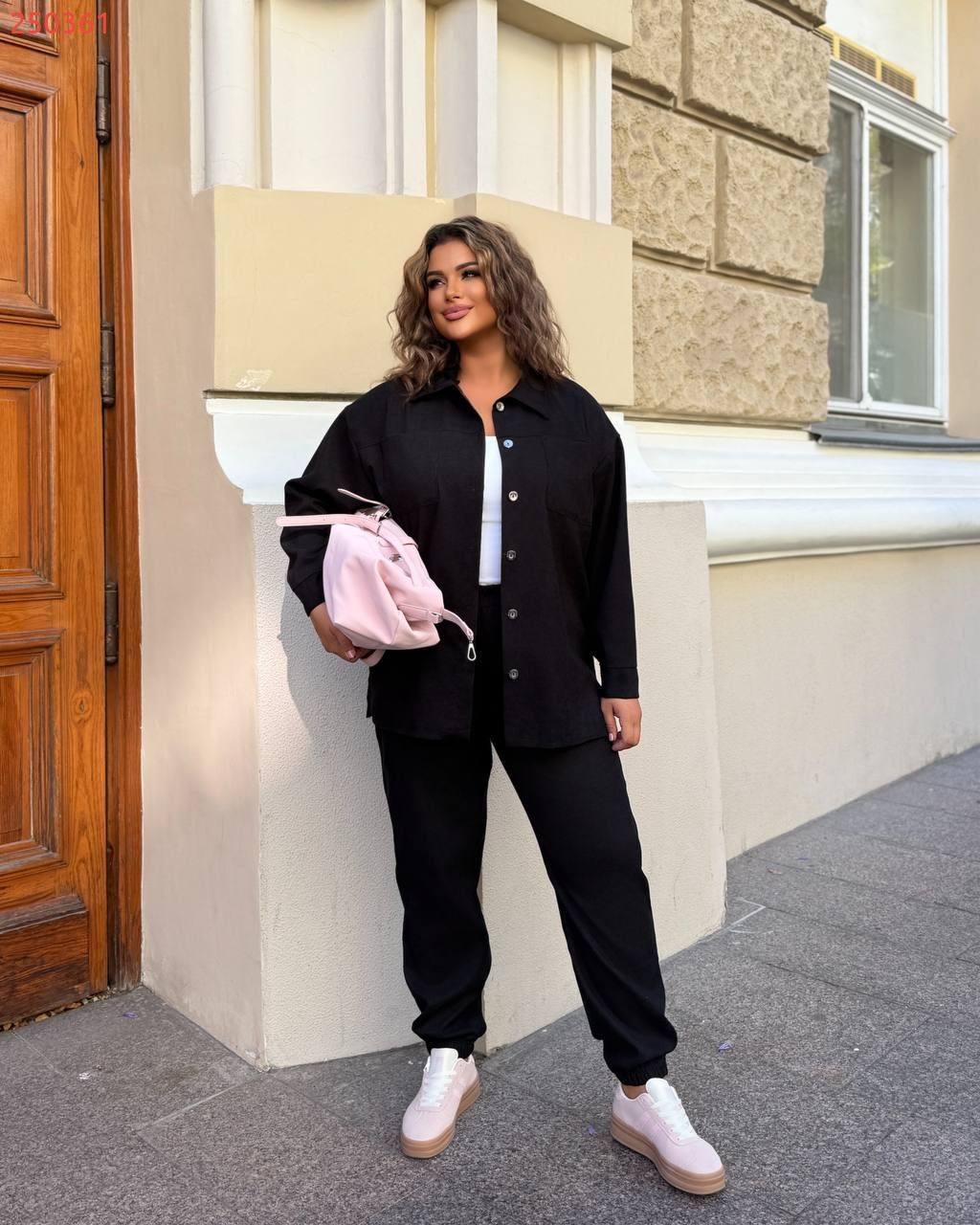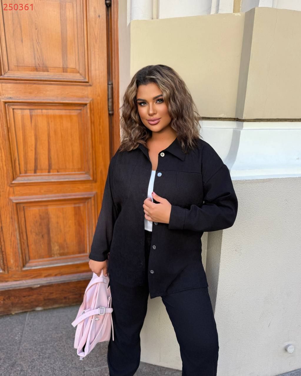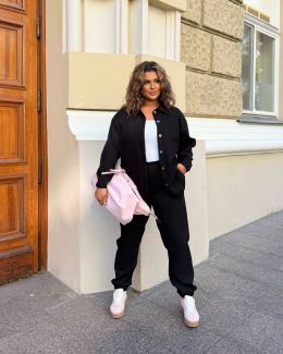 Костюм з м'якого мікровельвету великих розмірів – це ідеальне поєднання стилю та комфорту. Тканина з делікатною фактурою виглядає благородно і дорого, і при цьому залишається приємною до тіла і практичною в носінні. Мікровельвет м'яко тримає форму, не сковує рухів і дарує відчуття затишку протягом усього дня.