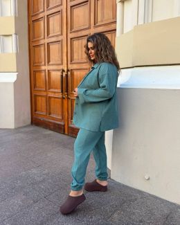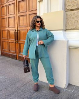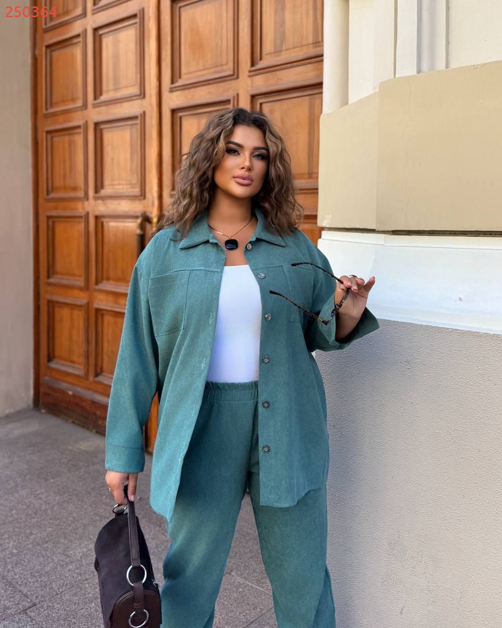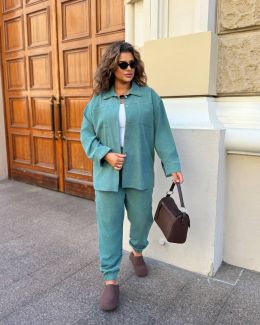 Костюм з м'якого мікровельвету великих розмірів – це ідеальне поєднання стилю та комфорту. Тканина з делікатною фактурою виглядає благородно і дорого, і при цьому залишається приємною до тіла і практичною в носінні. Мікровельвет м'яко тримає форму, не сковує рухів і дарує відчуття затишку протягом усього дня.