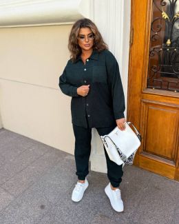 Костюм з м'якого мікровельвету великих розмірів – це ідеальне поєднання стилю та комфорту. Тканина з делікатною фактурою виглядає благородно і дорого, і при цьому залишається приємною до тіла і практичною в носінні. Мікровельвет м'яко тримає форму, не сковує рухів і дарує відчуття затишку протягом усього дня.