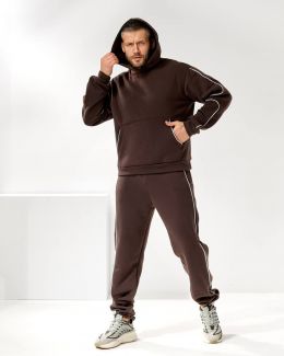 Чоловічий костюм з трьох нитки – це втілення комфорту і стилю в повсякденному одязі. М'яка тканина дбайливо зберігає тепло, дозволяючи шкірі дихати, а сучасний крій підкреслює мужність і свободу рухів. Костюм ідеально підходить як для прогулянок у прохолодну погоду, так і для домашнього затишку. Лаконічний дизайн робить його універсальним рішенням: він однаково органічно виглядає і в розслабленому, і в більш активному образі.