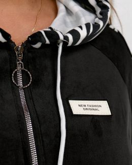 Кофта вільного силуету з капюшоном , кишені листочки. Прикрашений вставками з зебри. Рукав на манжеті.