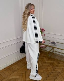Штани - вільна комфортна посадка , прямі, еластичний пояс на резинці, бокові кишені, декоративні вставки з лампасами в нижній частині.