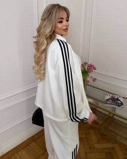 Кофта -прямий вільний крій з центральною застібкою на блискавку, комір-стійка, довгі рукави реглан з манжетами на резинці ,декоративні лампаси вздовж рукавів і спереду. Кофта має бокові кишені, низ виробу регулюється куліскою на резинці з фіксацією.
