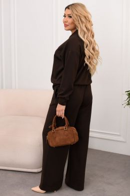 Вишуканий костюм-двійка для комфортних повсякденних образів. Кофта з італійського трикотажу – м’яка, еластична та приємна до тіла, застібається на трендові декоративні ґудзики й додає образу вишуканості. Штани середньої посадки на еластичному поясі забезпечують ідеальну посадку та свободу рухів, а шовні бокові кишені роблять модель ще практичнішою.