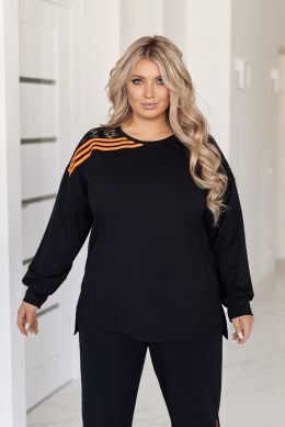 ●Світшот вільного крою з округлою горловиною та довгим рукавом на манжеті, по боках розрізи.