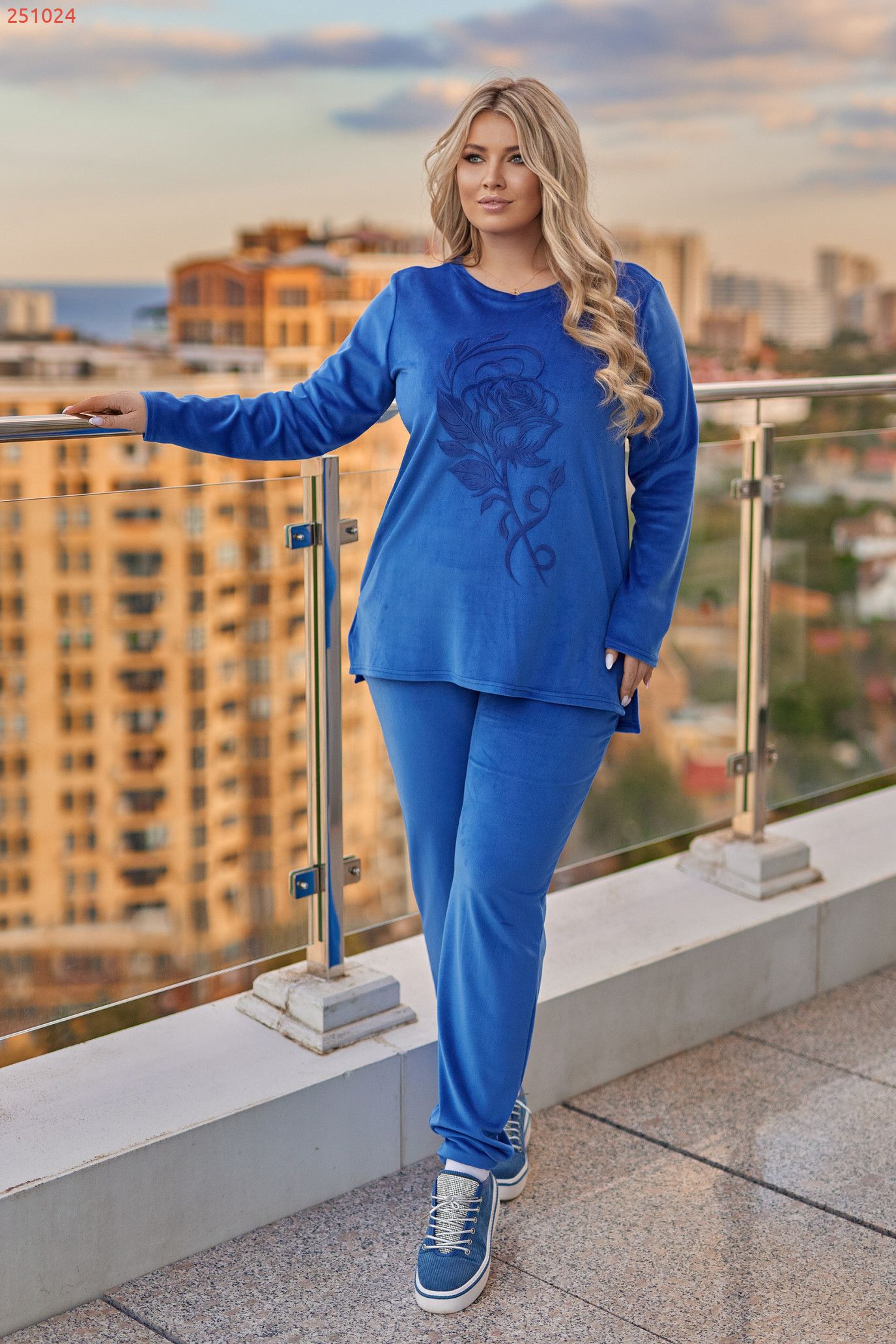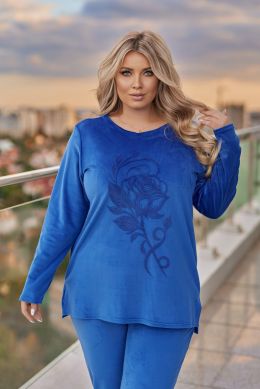 ●Світшот вільного крою з довгим рукавом, прикрашений аплікацією з того ж велюру у вигляді об’ємної квітки на грудях.
