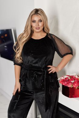 ■ Кофтинка з сітчастими рукавами ¾ і поясом, який підкреслює талію.