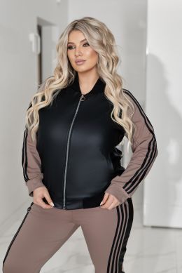Сучасний та комфортний костюм із тканини двухнитка гарної якості в поєднанні з еко шкірою. Тканина приємна до тіла, добре тримає форму та виглядає дуже ефектно.